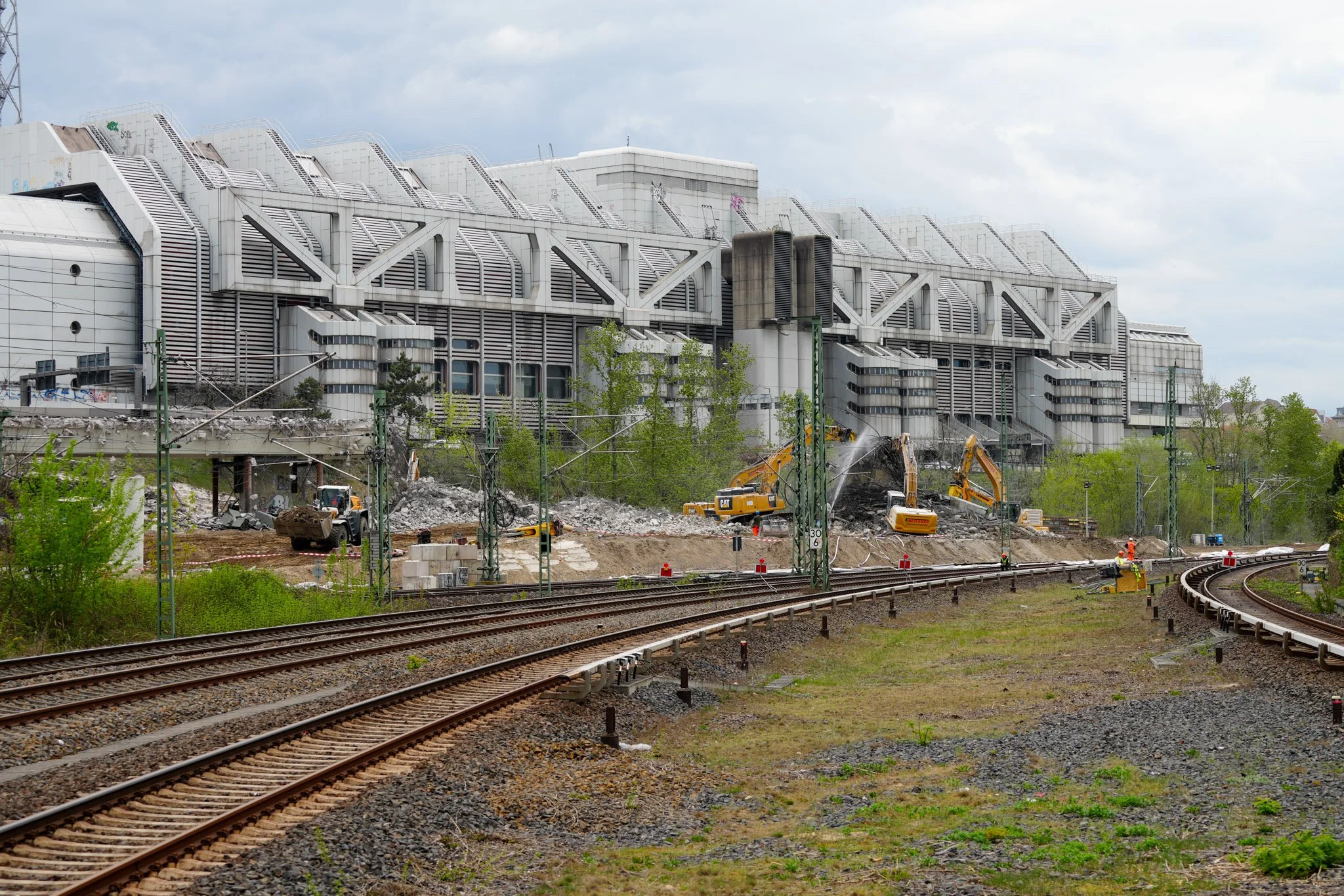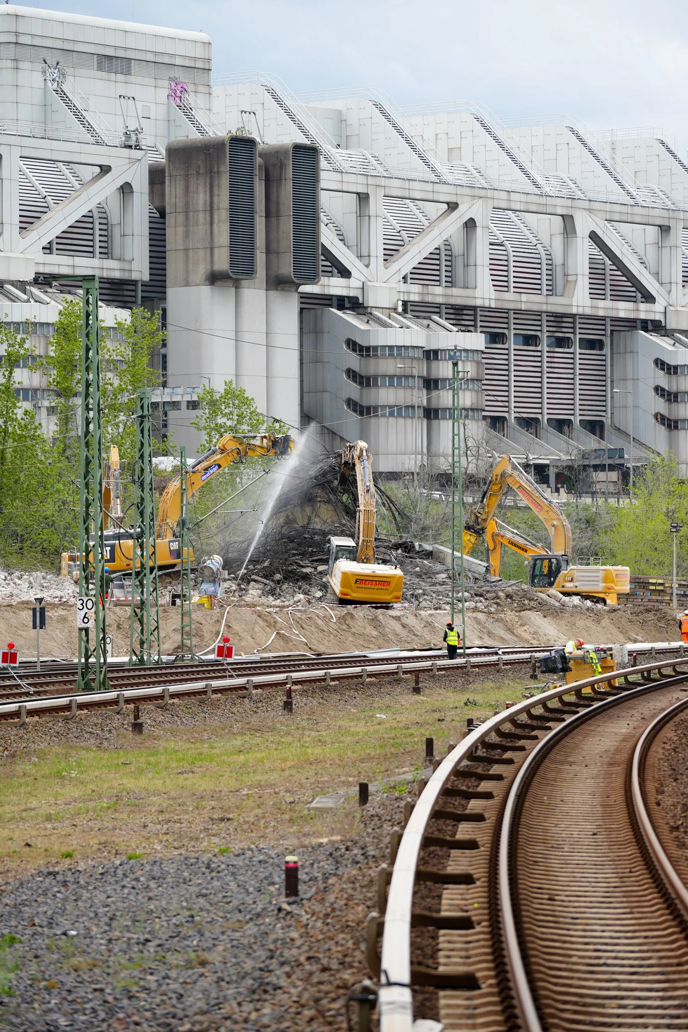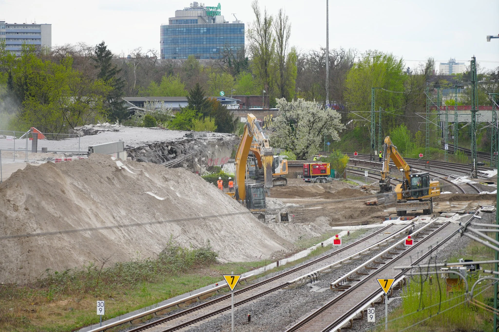 Abbrucharbeiten am nördlichen Widerlager der Ringbahnbrücke