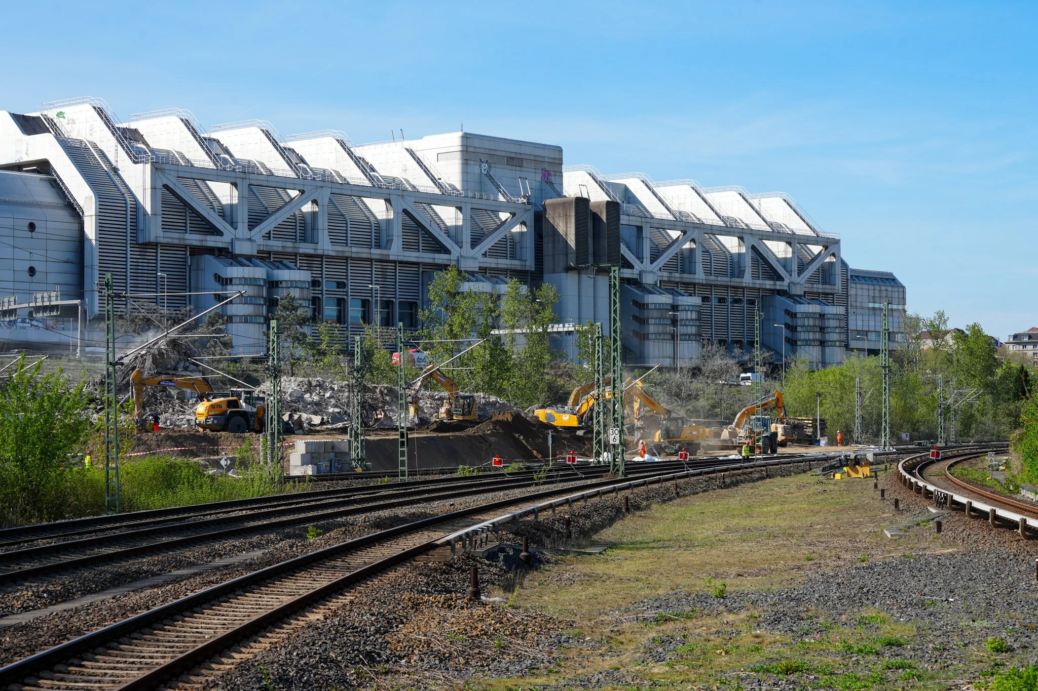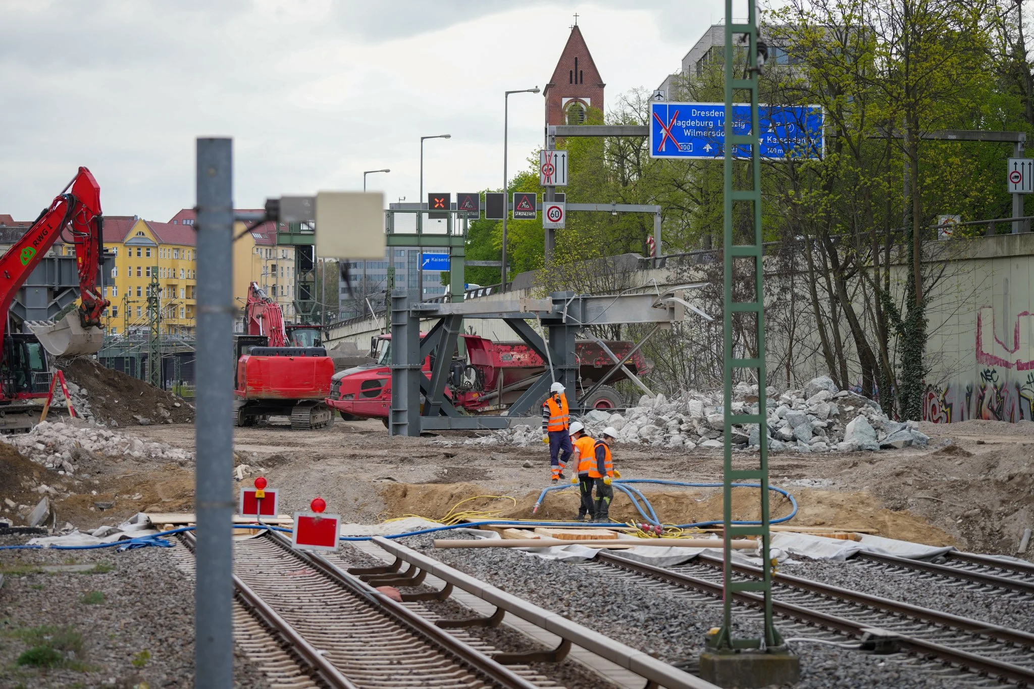 freigelegte Gleise der Ringbahn aus Richtung Ostpreußenbrücke